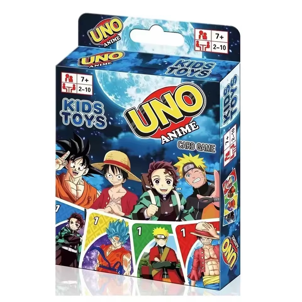 Les cartes UNO version anime revisitent le célèbre jeu de cartes avec des illustrations inspirées des plus grands univers de l’animation japonaise tels que One Piece, Naruto, Demon Slayer, Dragon Ball et bien d’autres. Chaque partie devient encore plus fun grâce à des visuels colorés mettant en avant des personnages emblématiques et des styles uniques. Faciles à jouer et idéales pour des moments conviviaux, ces cartes sont parfaites pour les fans d’anime qui souhaitent allier stratégie, divertissement et passion otaku.